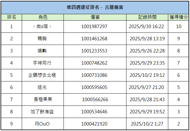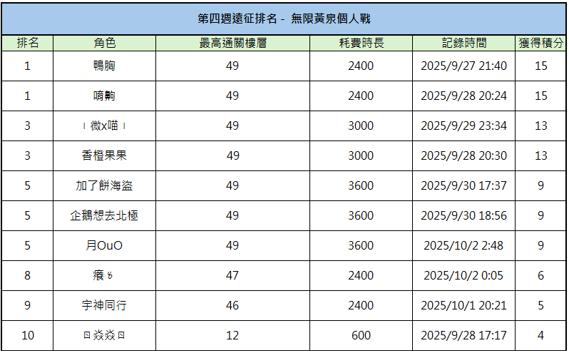 10/06 第四周暨最終遠征排名公告