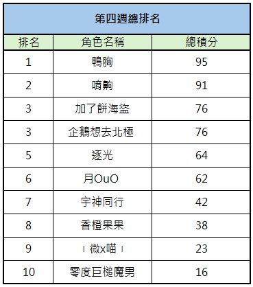 【第四週暨最終總排名】