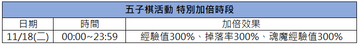 11/18 五子棋活動特別加倍 (11/17 19:20更新)