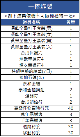 因發現一棒炸裂禮盒內容物數據異常,目前已暫時將此禮盒下架修復,後續資訊將更新於此篇公告。