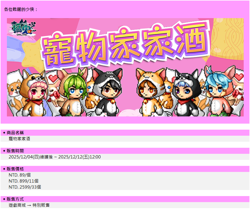 12/04 寵物家家酒禮盒販售資訊