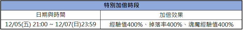 搞鬼營運團隊決定於12/05(五) 21:00 ~ 12/07(日)23:59開放特別加倍。