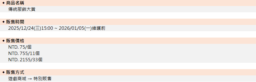 12/24 傳統服飾大賞禮盒販售資訊