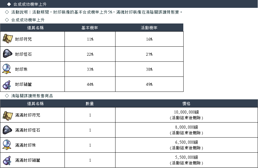 鬼魂合成機率提升活動異常已於11/06 18:00臨時維護後修復,很抱歉造成各位少俠的困擾。