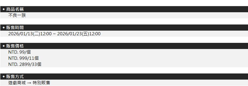 01/13 不良一族禮盒販售資訊