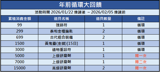 本次 2026/01/22 (四) ~ 2026/02/05 (四) 消費回饋活動已更新,活動如下: